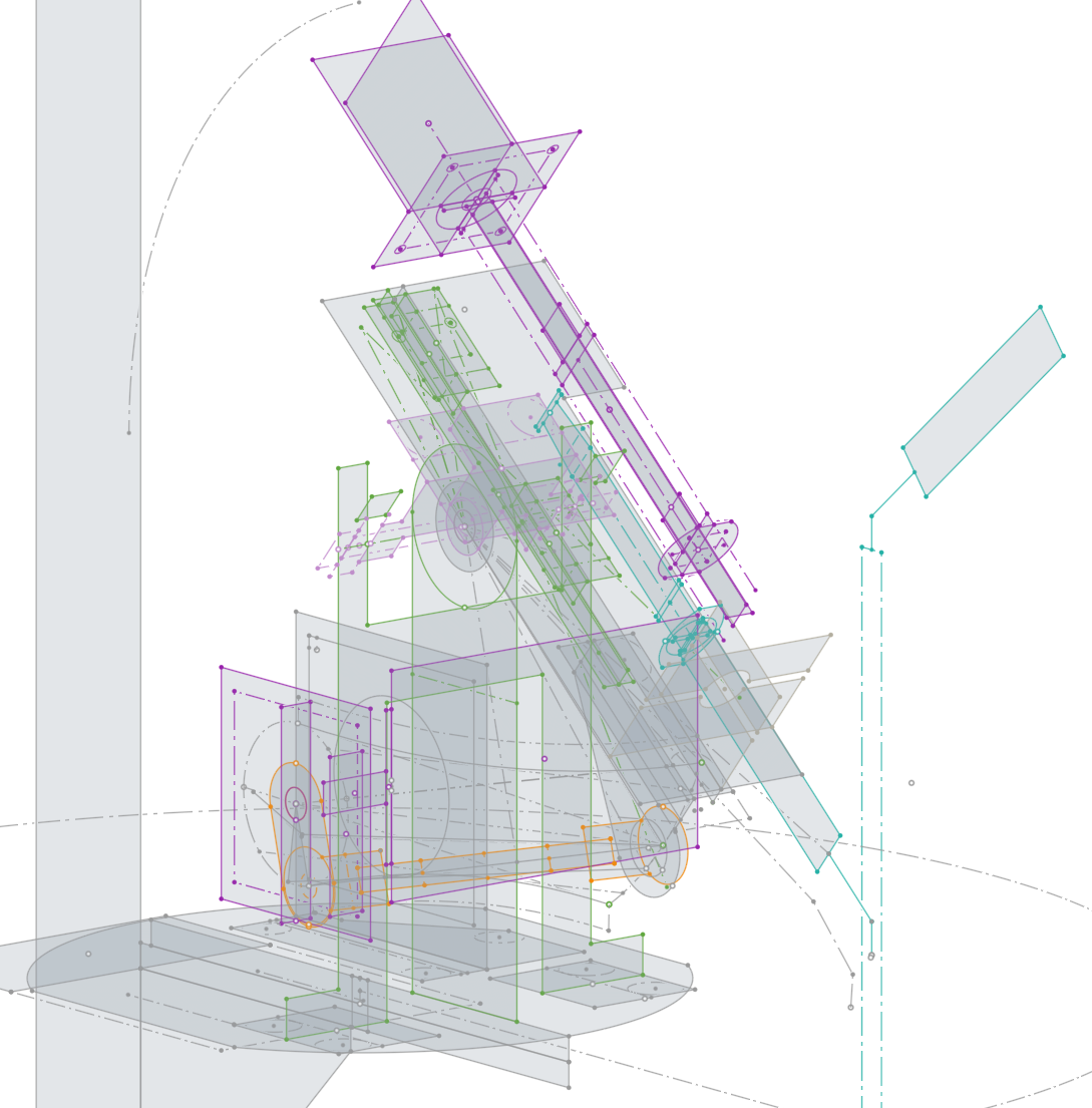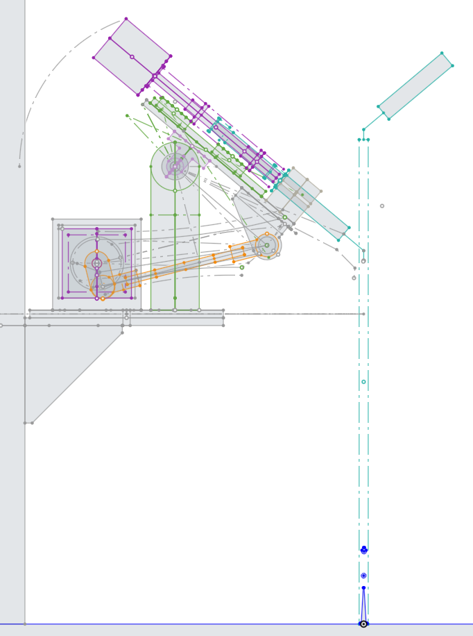 Master sketches to define the locations of everything, standard linear motion on the piston pump using a lead screw and linear rail. No need to overcomplicate with a ball screw since the piston is taking a one way trip whenever precision maters.
